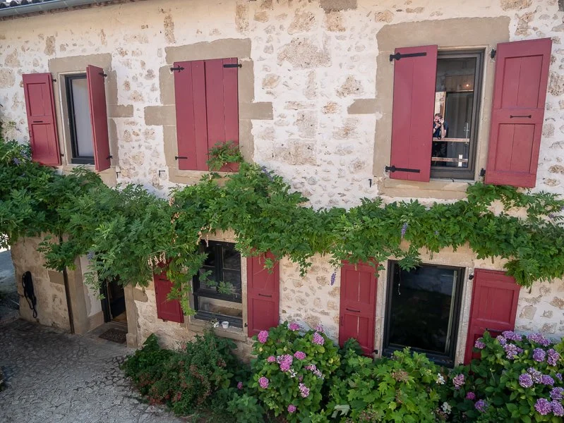 The last 20k of the journey were amazing. After going through Lourmarin the road goes into a gorge, tight and twisty first and second gear corners, then winds up the mountain. Just at the summit we turned off onto a straight road along the top of the mountain for 4 or 5 kilometres then it got narrow and twisty around some lavender fields and dropped down until we could see the village where we were staying