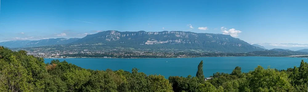 Aix-le-Bains is on the other side of the lake, on the right hand side is Chambery airport. Semnoz is the mountain at the far left furthest away.